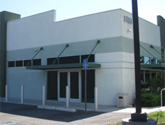 Color Scheme #4: Background color: Behr® Breakwater White. Upper story color: Behr® Celtic Gray. Lower story stucco panels color: Behr® Celtic Gray. Horizontal bands color: Behr® Inland. (The colors in the above image are from the Behr® website.) See image to the right for an actual building with these colors. Click for a Larger Image. |