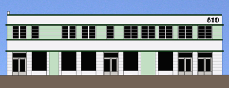 Below are possible color schemes that were considered by Southport Land® for the Streamline Moderne building at 610 Court Street. In March, 2014 “Color Scheme #5” (see below) was selected.